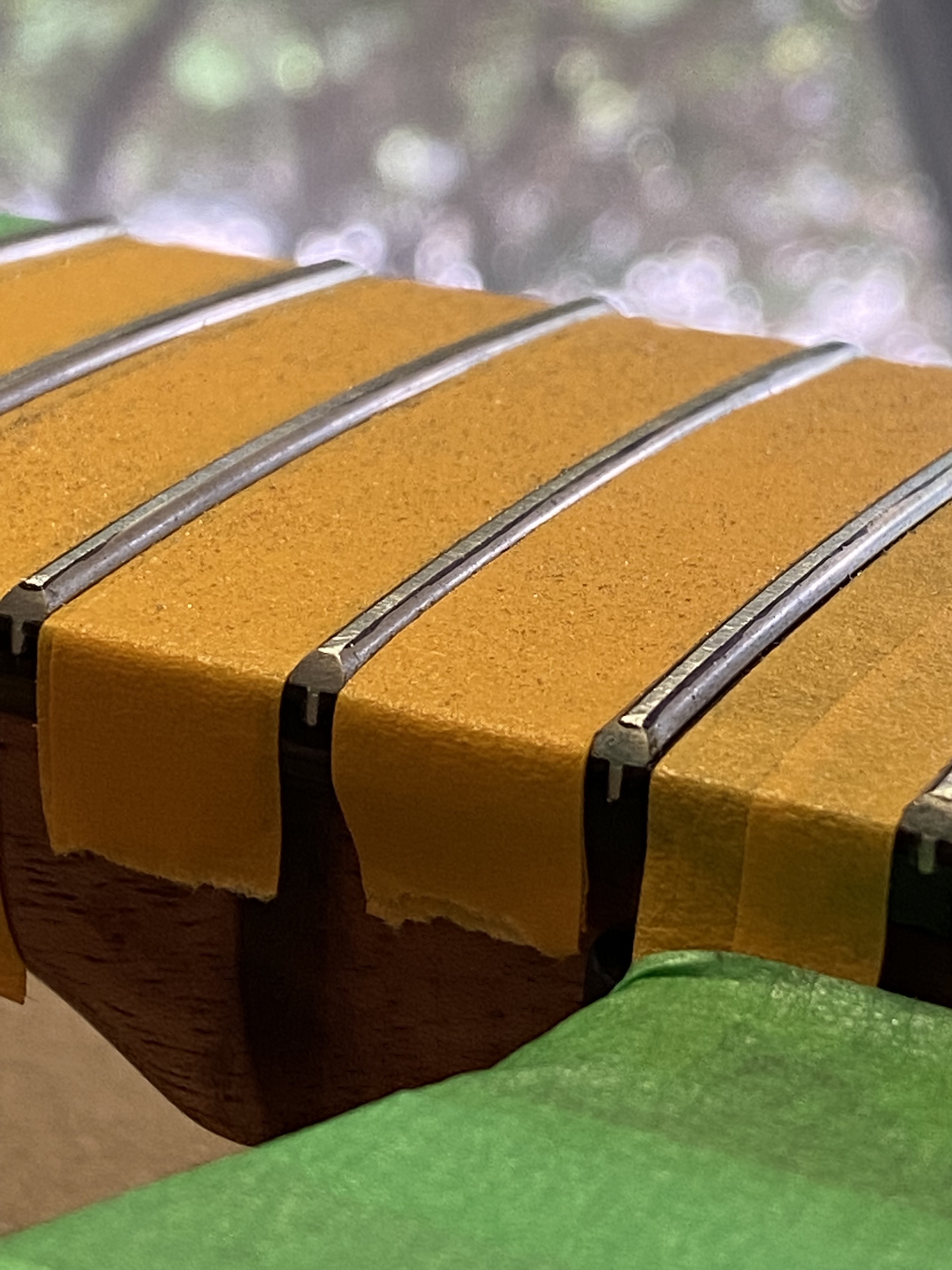 Having your frets levelled and polished in this way will breath a whole new life into the instrument. The setup can now be fine-tuned without needing to compensate for any uneven frets. Plus, the freshly polished surface of the frets will feel silky-smooth to play. Strings will glide effortlessly across the surface of the frets, making bends easier. Finally, the rolled and polished ends of the frets will slide cleanly under your fingers, making the neck feel more comfortable.